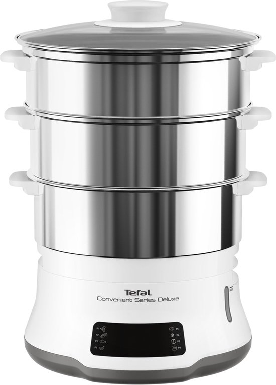 De stoomkoker heeft een ruime capaciteit van 12 liter, waardoor je genoeg eten kunt bereiden voor het hele gezin. Daarnaast is de stoomkoker voorzien van een handige timerfunctie, zodat je precies kunt instellen hoelang je gerechten gestoomd moeten worden. De stoomkoker wordt geleverd met een handige rijstkom en een receptenboekje, zodat je meteen aan de slag kunt met het bereiden van heerlijke maaltijden. Dankzij de krachtige stoomgenerator en de gelijkmatige verdeling van de stoom, blijven de voedingsstoffen en smaken van je gerechten optimaal behouden. De Tefal Convenient Series Deluxe XL Stoomkoker is een onmisbare toevoeging aan elke keuken voor iedereen die graag gezond en smaakvol wil koken. Maak van elke maaltijd een feestje met deze handige stoomkoker!