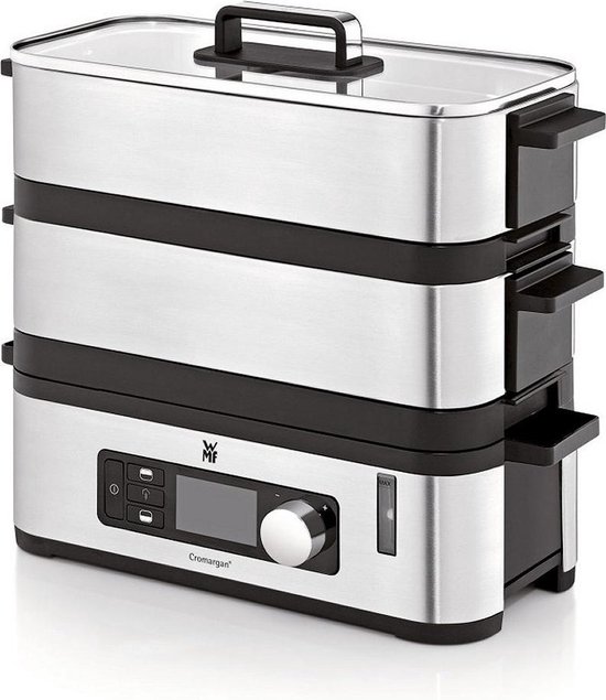 Met deze stoomkoker van WMF kunnen gerechten behouden blijven van hun smaak en voedingsstoffen, waardoor je elke keer weer geniet van een heerlijke maaltijd. De stoomkoker heeft een capaciteit van 4,3 liter en is perfect voor het stomen van groenten, vis, vlees en zelfs desserts. Daarnaast beschikt het over een handige timerfunctie, zodat je altijd de perfecte gaarheid kunt bereiken. De stoomkoker is gemaakt van hoogwaardig Cromargan roestvrij staal en is gemakkelijk te reinigen. Dankzij de compacte afmetingen neemt de stoomkoker weinig ruimte in beslag in je keuken. Met de WMF KITCHENminis® aroma stoomkoker bereid je eenvoudig en snel gezonde maaltijden voor het hele gezin. Laat je verrassen door de eindeloze mogelijkheden van deze handige stoomkoker!