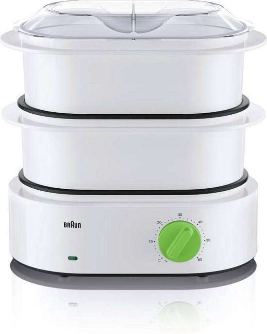 Deze stoomkoker heeft een ruime capaciteit van 9 liter, waardoor je gemakkelijk verschillende gerechten tegelijkertijd kunt stomen. Dankzij de krachtige stoomgenerator worden je ingrediënten gelijkmatig en snel gaar, terwijl de voedingsstoffen en smaken behouden blijven. De stoomkoker is voorzien van een handige timerfunctie, zodat je precies kunt instellen hoelang je gerechten gestoomd moeten worden. Daarnaast is de Braun FS 3000 stoomkoker ook nog eens eenvoudig te reinigen, dankzij de vaatwasserbestendige onderdelen. Zo bespaar je niet alleen tijd tijdens het koken, maar ook bij het schoonmaken achteraf. Met deze stoomkoker haal je een onmisbaar keukenapparaat in huis dat je helpt om gezonde en smaakvolle maaltijden op tafel te zetten, elke dag weer. Maak koken leuk en makkelijk met de Braun FS 3000 stoomkoker!