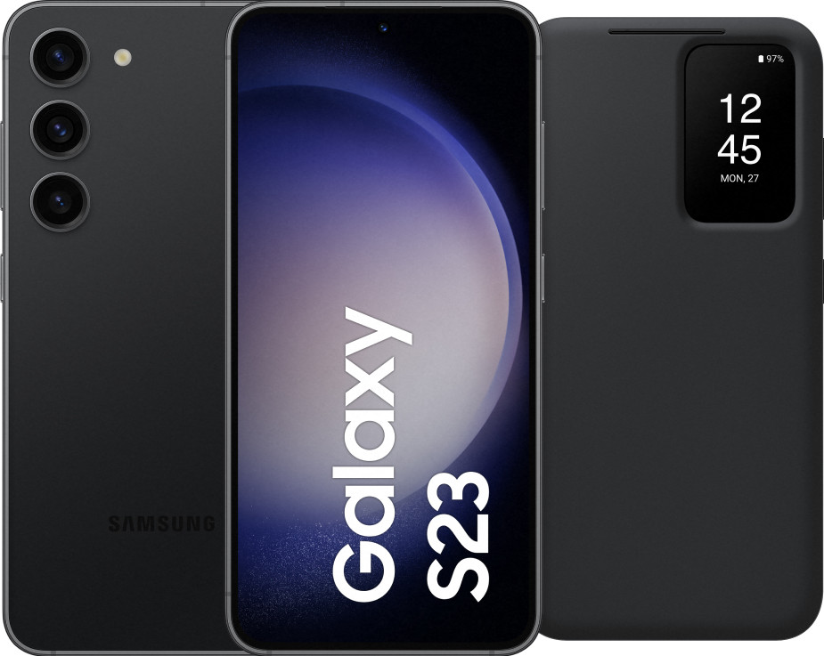 Bescherm je nieuwe Samsung Galaxy S23 128GB Zwart 5G tegen schade met de handige meegeleverde Samsung Clear View Book Case. Met het venster in de voorflap heb je direct zicht op de tijd, je meldingen en inkomende oproepen, zonder dat je het hoesje hoeft open te klappen. Deze compacte en krachtige smartphone heeft een 6,1 inch full hd scherm, waardoor je hem gemakkelijk met één hand kunt bedienen. Of je nu je favoriete 3D-games speelt of zware apps gebruikt, de S23 biedt moeiteloze prestaties. De Samsung S23 is uitgerust met 3 camera's aan de achterkant: een standaard-, groothoek- en telelens. Met de telelens kun je tot 3 keer inzoomen zonder dat je foto's aan scherpte verliezen. Met het grote opslaggeheugen van 128 GB is er voldoende ruimte voor al je foto's, video's en apps. Heb je behoefte aan nog meer ruimte? Dan kun je kiezen voor het 256 GB model. Ondanks zijn compacte formaat heeft de Galaxy S23 een batterij van 3.900 mAh, die bij gemiddeld gebruik een hele werkdag meegaat. En als je snel wilt opladen, kun je gebruik maken van de los verkrijgbare Samsung 25 watt snellader, waarmee je de batterij in slechts één uur volledig kunt opladen.