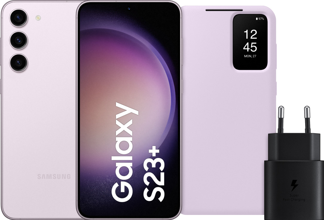 Met het Samsung Galaxy S23 Plus 512GB Roze 5G + Accessoirepakket ben je direct voorzien van de juiste accessoires voor je nieuwe smartphone. Samsung levert standaard geen oplader mee, maar in deze bundel zit een snellader van maar liefst 25 watt. Hiermee laad je jouw telefoon in slechts een uur volledig op. Daarnaast bevat het pakket ook een handige Clear View book case, waarmee je niet alleen je S23 Plus beschermt tegen schade, maar ook snel je meldingen en oproepen kunt bekijken. De Samsung Galaxy S23 Plus is een krachtpatser met een groot, 6,6 inch scherm. Dankzij het full hd scherm geniet je comfortabel van al je favoriete films en series. Bovendien is deze smartphone uitgerust met een krachtige Snapdragon processor, waardoor hij geschikt is voor zelfs de meest veeleisende taken en 3D-games. Aan de achterkant van het toestel vind je maar liefst 3 hoogwaardige camera's, waarmee je haarscherpe foto's en zelfs 8K-video's kunt maken. En met het ruime opslaggeheugen van 512 GB heb je voldoende ruimte om al je foto's, apps en opgeslagen films en series op te slaan. De 4.700 mAh batterij zorgt ervoor dat je bij gemiddeld gebruik de hele dag door kunt gaan zonder tussentijds op te laden.