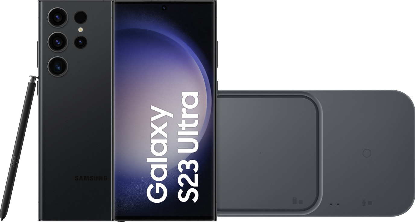Met de Samsung Galaxy S23 Ultra 256GB Zwart 5G + Duo Draadloze Oplader 15W ben je altijd verzekerd van een razendsnelle oplaadervaring. Binnen slechts 2 uur is je telefoon volledig opgeladen, zodat je direct weer aan de slag kunt. Maar dat is niet alles, want met de Duo Draadloze Oplader kun je tegelijkertijd ook je Galaxy Watch of draadloze oordopjes opladen. Zo heb je altijd al je favoriete apparaten binnen handbereik. De Samsung Galaxy S23 Ultra is niet alleen een krachtige smartphone, maar ook een professionele camera. Met maar liefst 4 camera's aan de achterkant kun je haarscherpe foto's en 8K video's maken. De telelens zoomt zelfs tot 10 keer in, zonder dat je beeldkwaliteit verliest. Met het ruime 256 GB opslaggeheugen kun je al je foto's, apps en bestanden gemakkelijk opslaan. En als je nog meer ruimte nodig hebt, kun je kiezen voor het 512 GB of zelfs het 1 TB model. Het grote 6,8 inch scherm van de Galaxy S23 Ultra zorgt voor een meeslepende kijkervaring. Dankzij de scherpe quad hd resolutie geniet je van al je favoriete films en series in de hoogste beeldkwaliteit. Maar deze telefoon is niet alleen geschikt voor entertainment, want met de S23 Ultra kun je ook de zwaarste taken uitvoeren en snel schakelen tussen verschillende apps. Met de meegeleverde S Pen stylus kun je nauwkeurige aantekeningen maken en foto's en video's bewer.